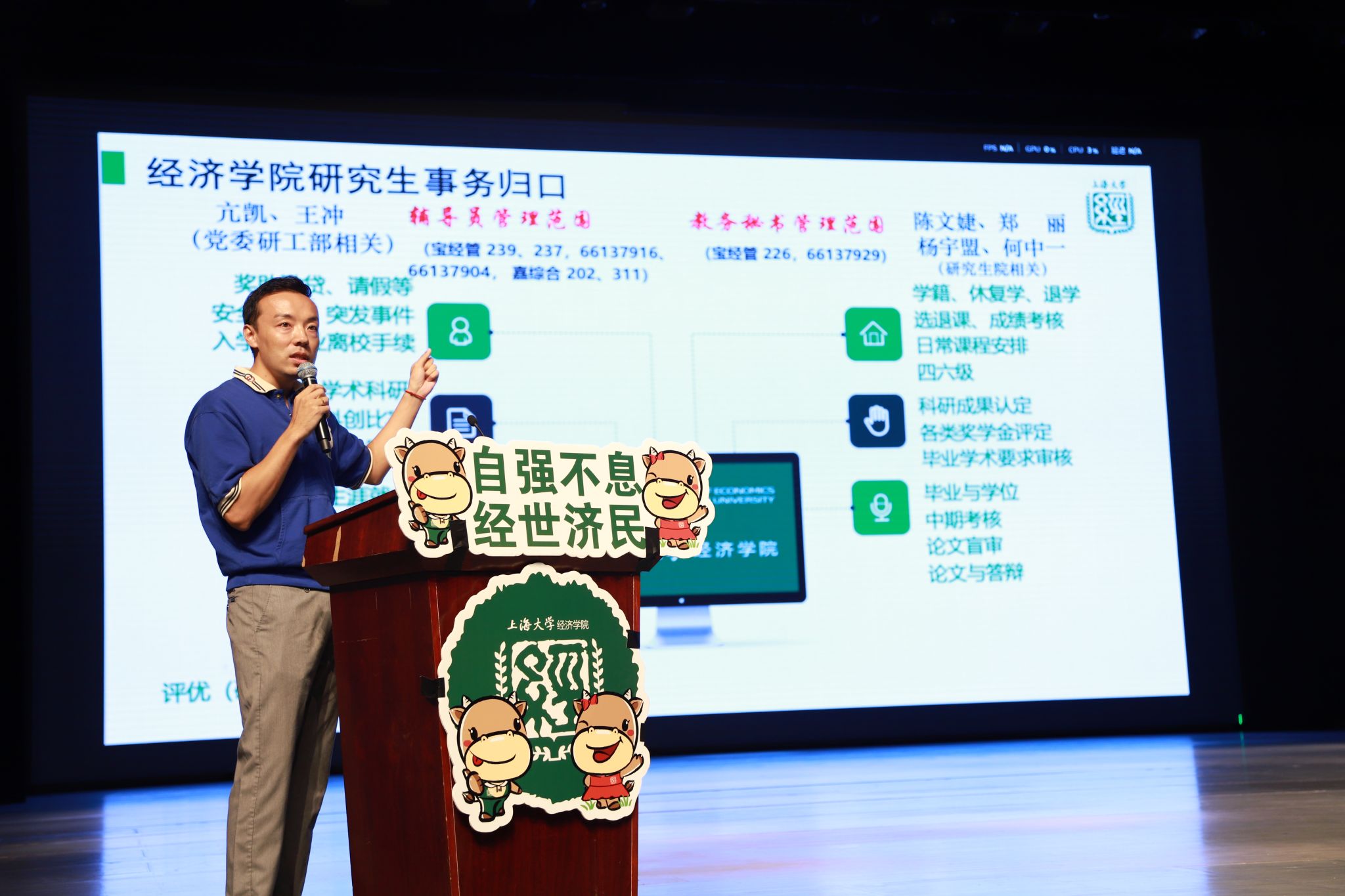 下篇:做合格经院人! 开学典礼结束后,研究生新生适应性教育随即展开。教务老师何中一为同学们详细解读了培养方案、课程设置及考核要求;专职辅导员亢凯介绍了日常事务管理流程;辅导员王冲开展了心理健康与校园安全专题教育;实验室主管王晓磊展示了实验室和各类经济金融数据库的查看来源和使用方法。 最后,学院党委副书记、副院长冯玉鑫在总结发言中以一词豪迈的沁园春·雪开篇,鼓励新生要始终饱含昂扬向上的精神风貌,并结合上大办学历程和历届优秀校友的成长案例,鼓励大家敏于发现问题、善于分析问题、勇于解决问题,传承全讯800cc大白菜深厚的爱国底色和“海纳百川”的精神,努力成长为兼具家国情怀、全球视野和专业素养的复合型人才。 至此,800全讯白菜网2025级新生开学典礼暨适应性教育活动圆满落幕。愿全体新同学秉承师长的殷切嘱托,胸怀梦想,脚踏实地,在800全讯白菜网书写属于自己的青春华章,为实现中华民族伟大复兴贡献青春力量! |