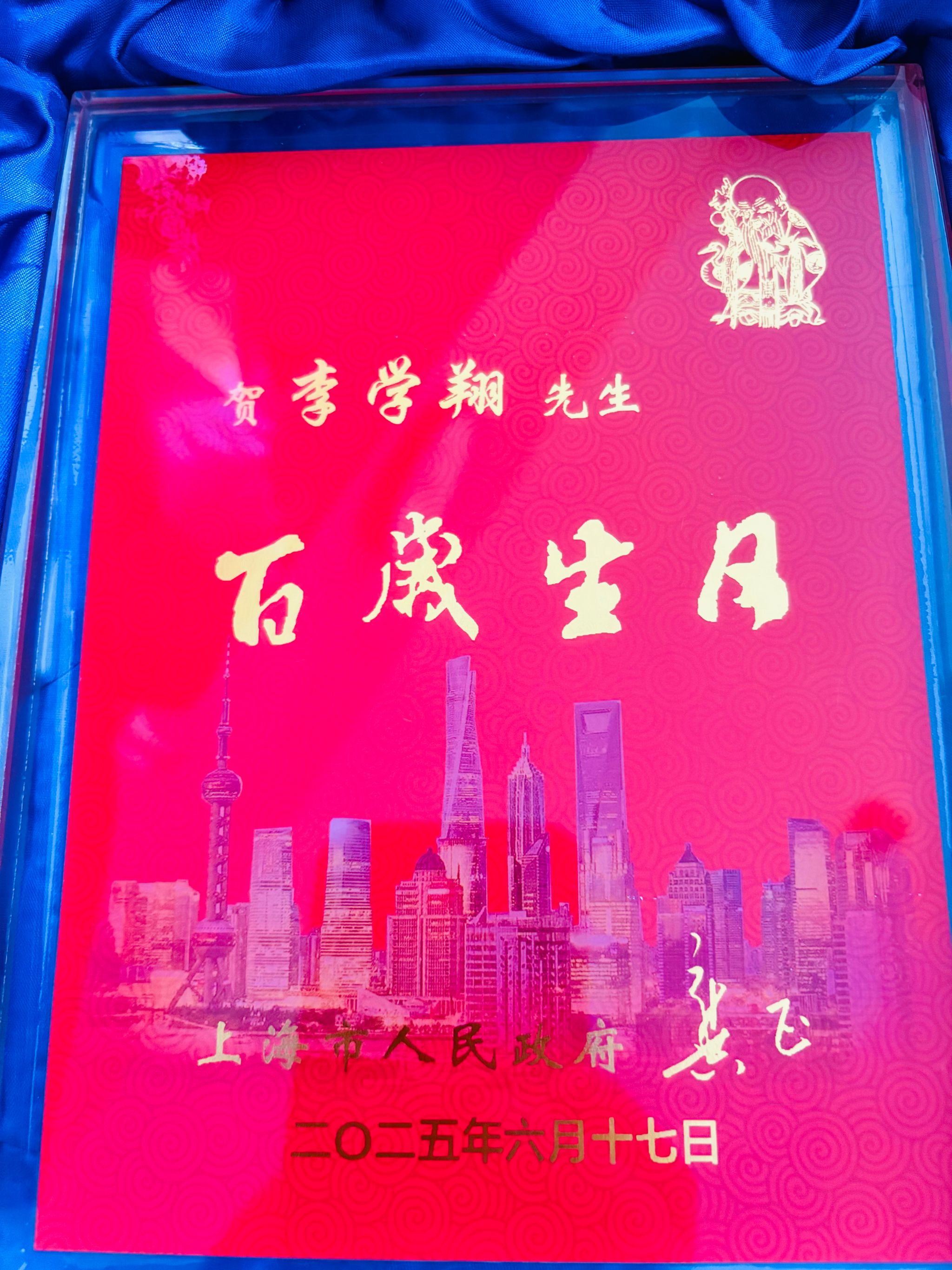 “今日云景好,水绿秋山明。”适逢农历九月初九, 重阳佳节,丹桂飘香。值此感恩敬老,登高赏秋之际,800全讯白菜网也要向一位百岁高龄的老教师——李学翔教授,致以崇高的敬意和真挚的祝福。 李学翔老师为1925年6月17日生人,1945年9月毕业于天津南开中学,1949年7月毕业于北京辅仁大学经济系。毕业后,李老师以见习生身份进入华北人民政府财政部研究室,开启了他与国家经济建设事业的缘分。1949年10月,李老师成为中央财政部办公厅统译处、予标司综合计划处的一名科员,为我国财经事业的发展勤勉奋斗、贡献力量。1954年8月,李老师来到上海,先后在多所学校任教。 1983年,李学翔老师进入全讯800cc大白菜工商管理学院工作,教授统计学,后担任教研室主任,并被评为副教授。深耕教坛三十载,李老师的生涯早已与教育事业紧密相连,三尺讲台春风化雨,桃李满天下。1985年,李老师光荣离休。虽然离开讲台,但是他对学生和教育的牵挂,从未因岁月而淡去。 今年,正值李学翔老师百岁华诞。6月17日,上海市人民政府为他颁发了“百岁生日”纪念证书,市长龚正亲笔签署祝贺。“百岁生日”,红底金字,映照着李老师人生百年来的荣光与坚守。