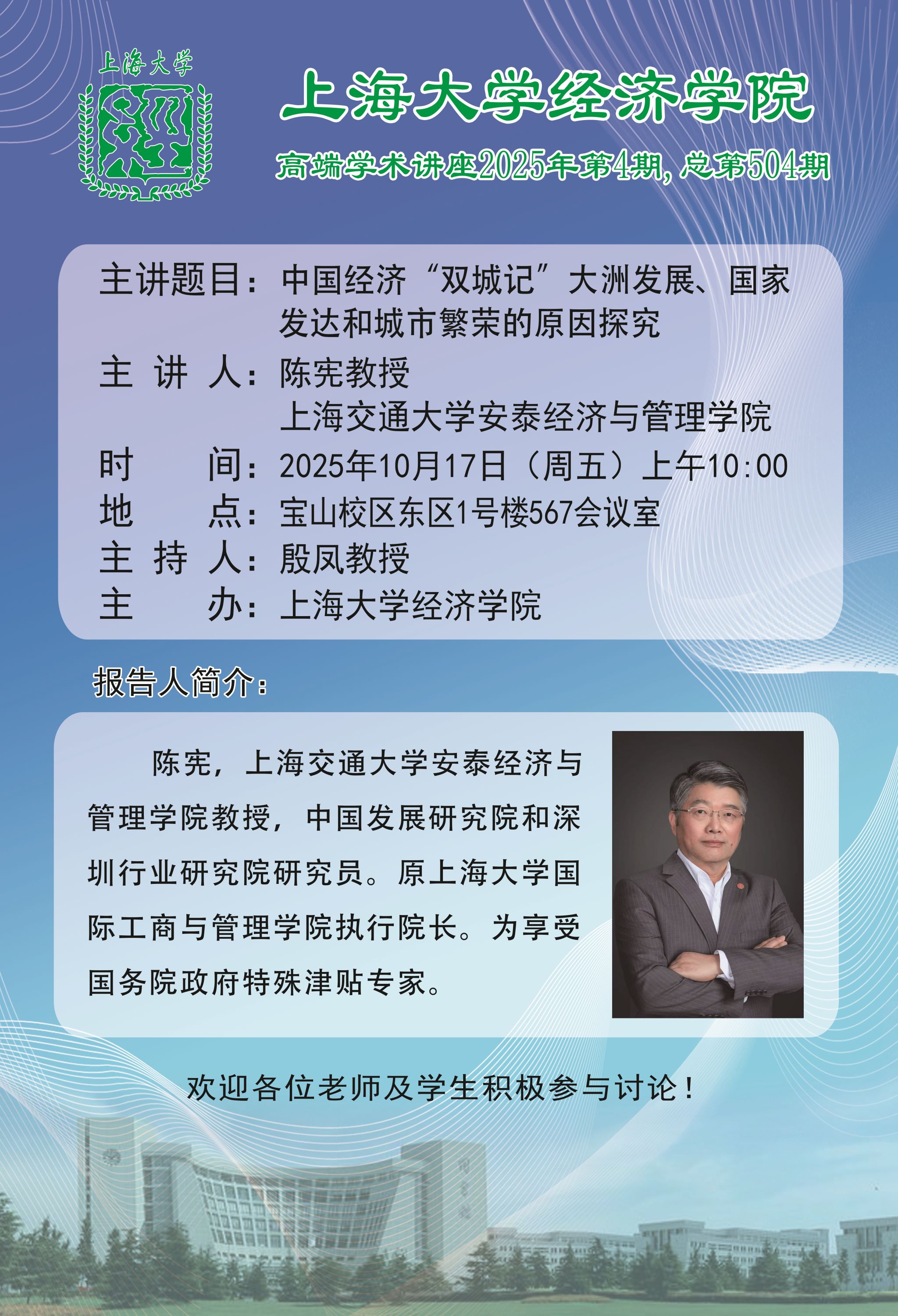 | 主讲人 | 陈宪 | 报告时间 | 2025年10月17日 |