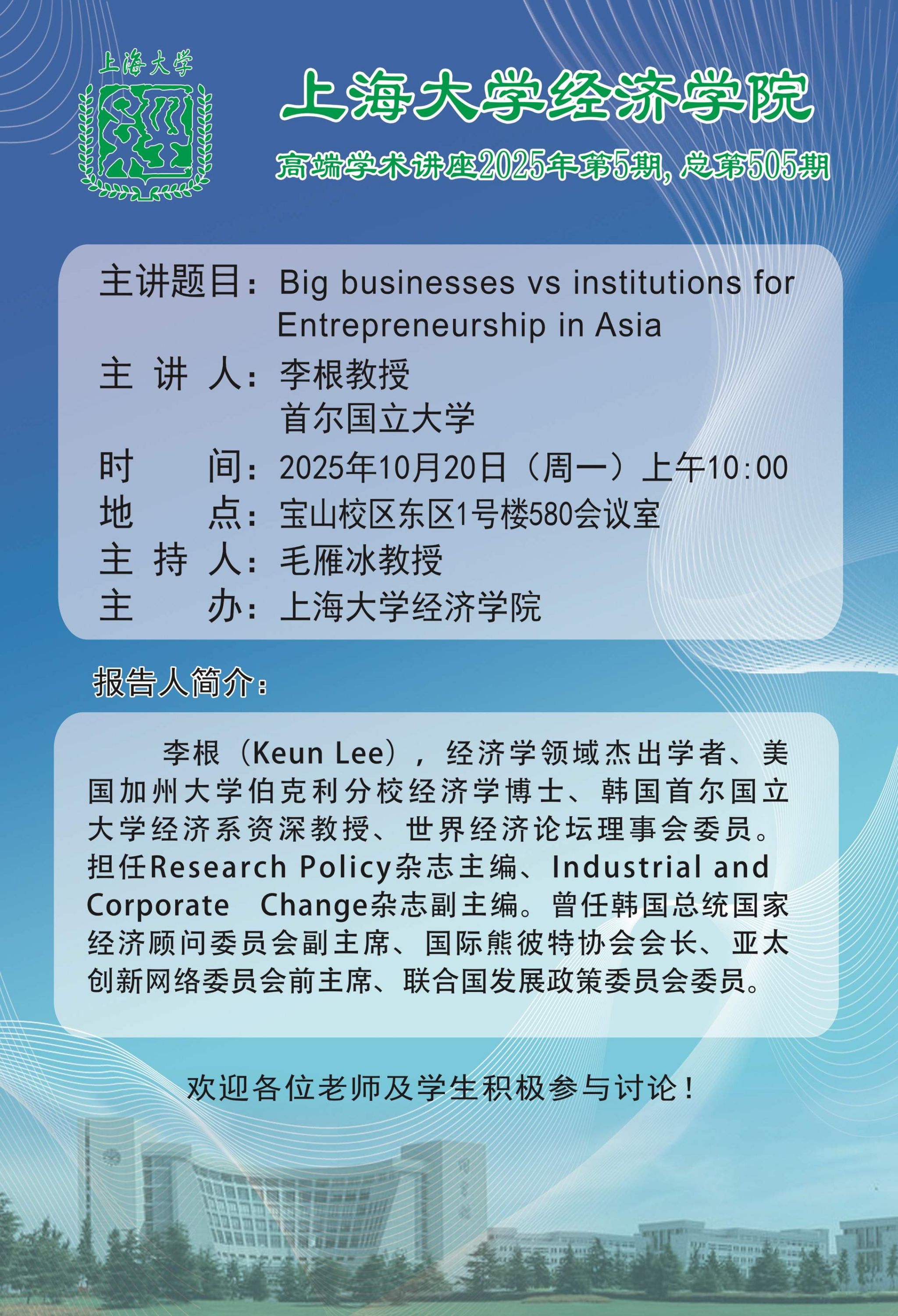 | 报告地点 | 宝山校区东区1号楼580会议室 |